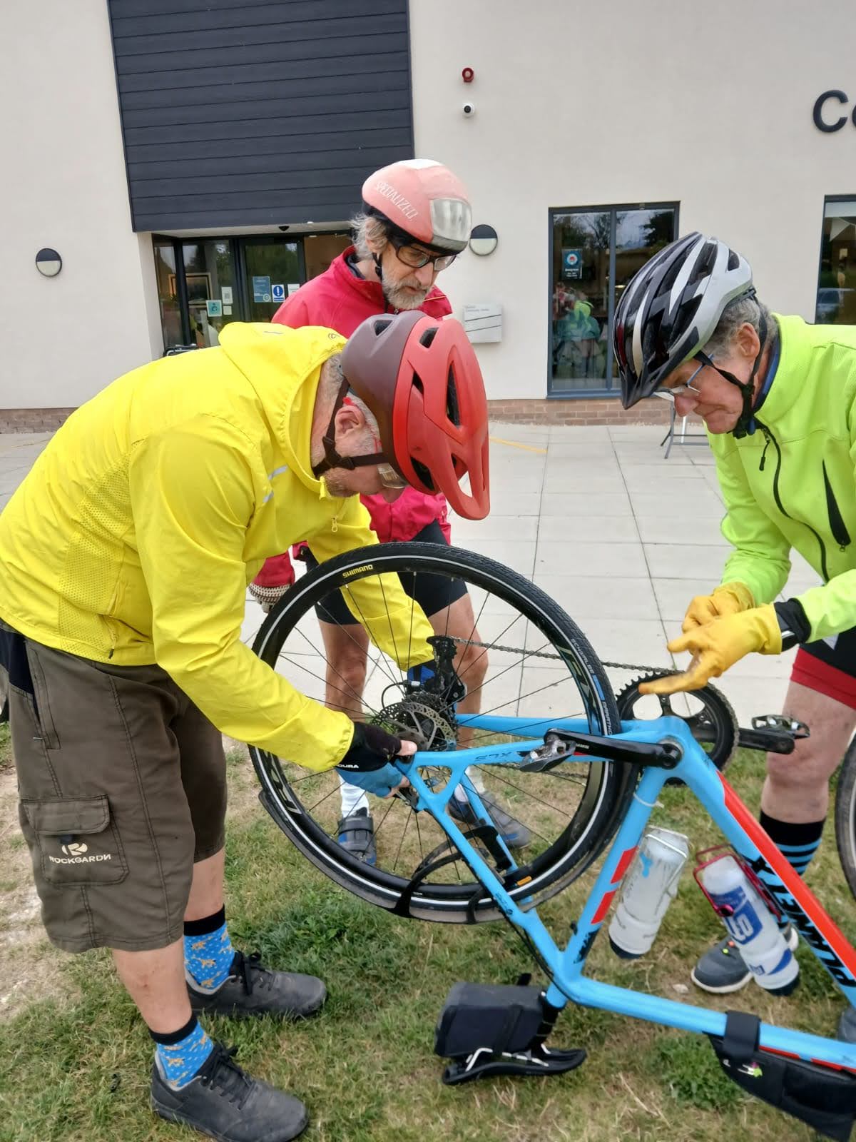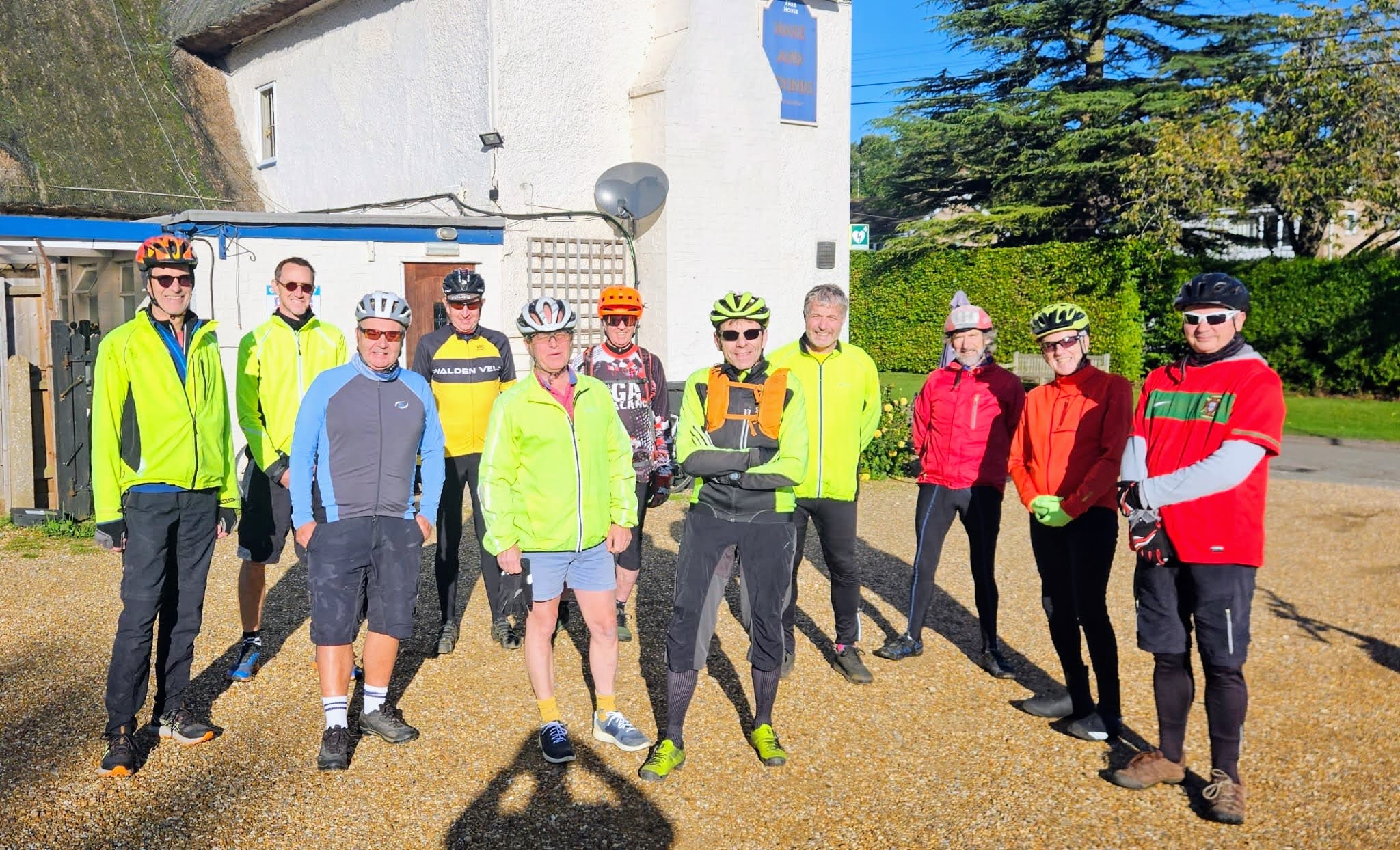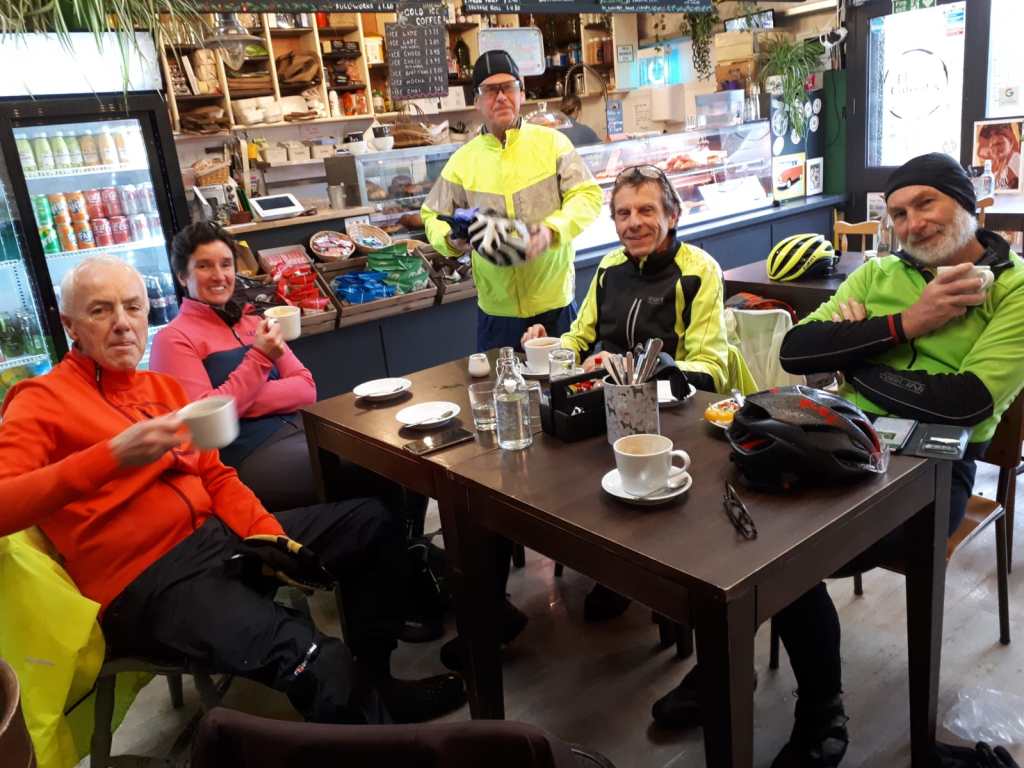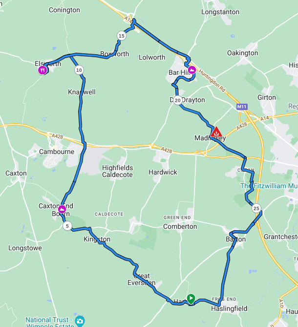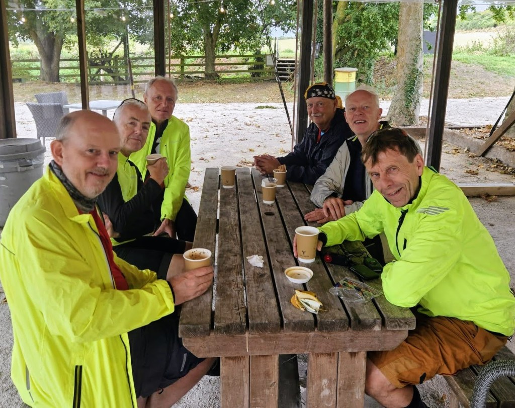Led by Brian, we had set off in two groups from Harlton on a 30 mile circuit taking in the pretty villages of Knapwell, Elsworth and Boxworth, places we last visited some five years ago, and it was in Elsworth that we pulled in at Frank’s Farm, for us a new venue serving good coffee and home made cakes in a very pleasant garden overlooking a meadow.