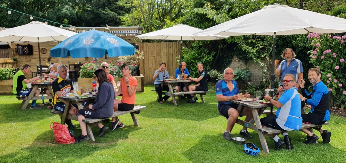 News travels fast in the licensed trade. So when the landlord of the Hare & Hounds suggested we lunch in the garden we guessed he’d been warned about Simon’s inability to hold a drink. Fortunately, it was a sunny autumn day and an al fresco lunch made for the perfect end to a delightful morning’s ride.