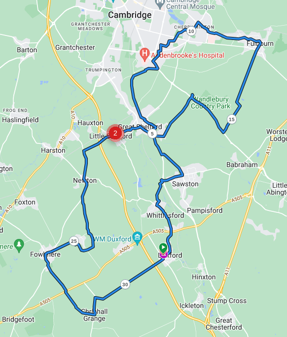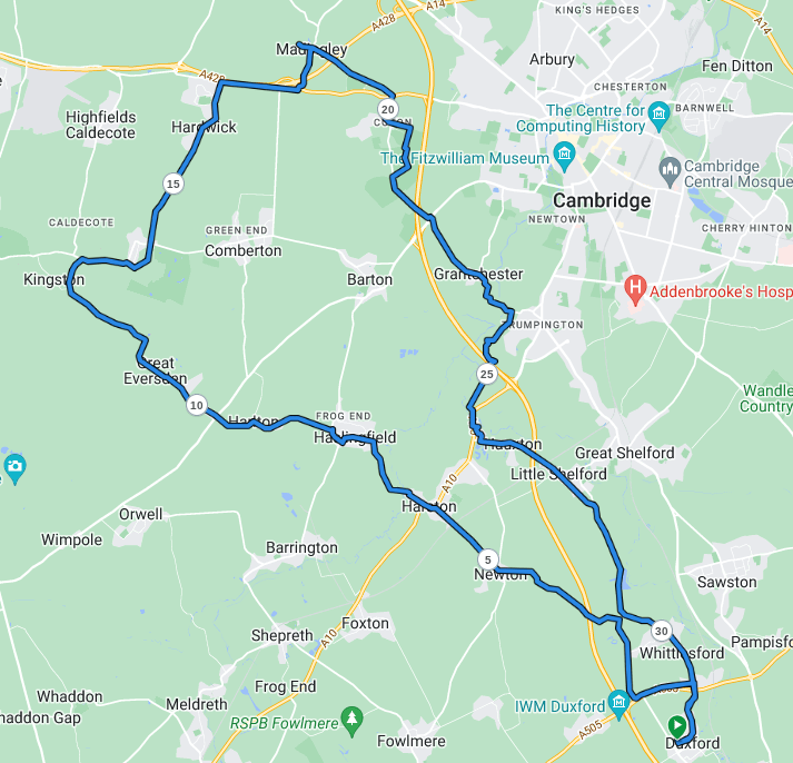 Between the bridges there was a two-mile purpose built cycleway running beside the eight lanes of traffic that form the new A14 plus the adjacent old road it replaced; all a bit noisy but otherwise safe, easy riding back to the more rural lanes leading to Dry Drayton and Madingley.