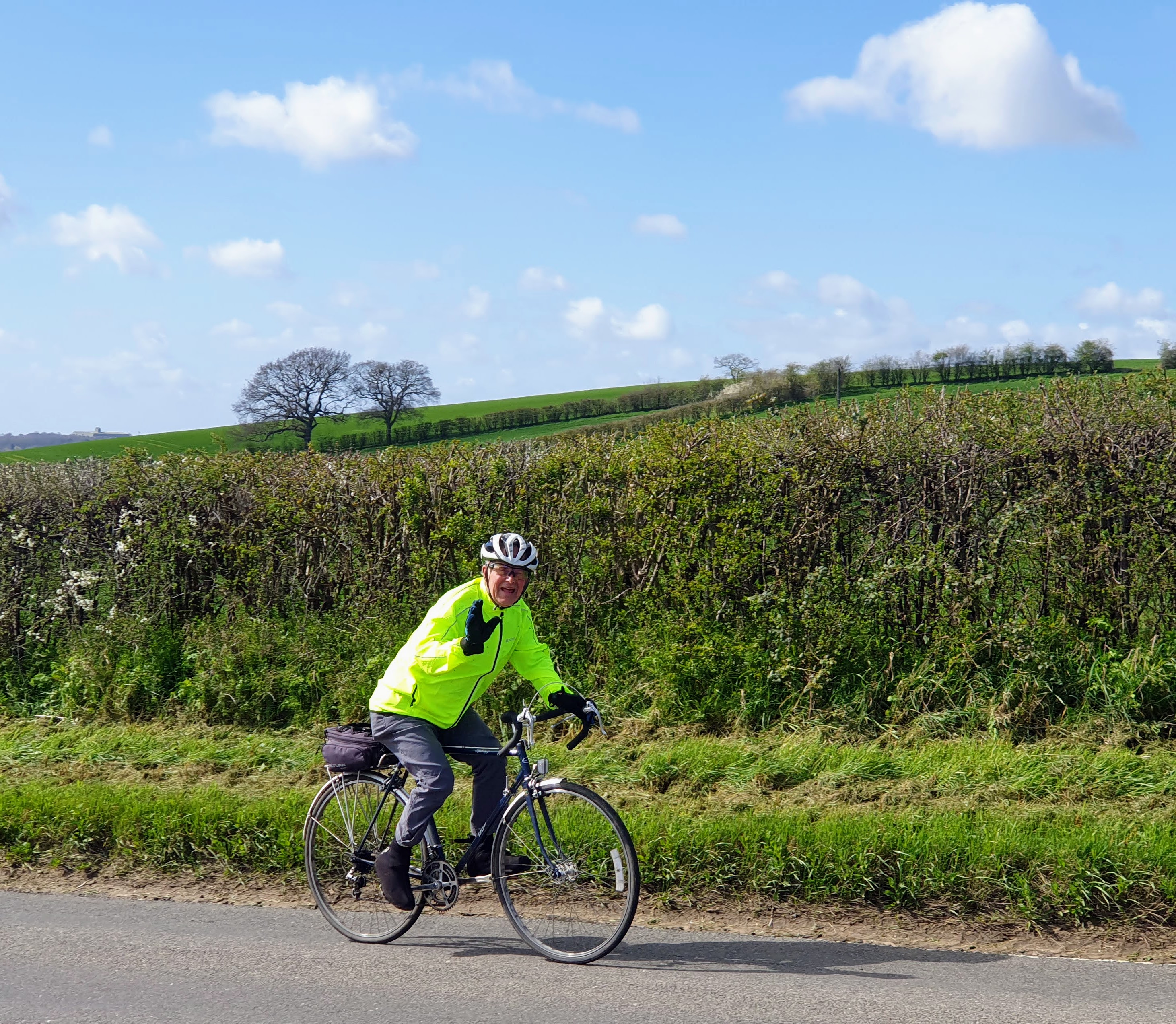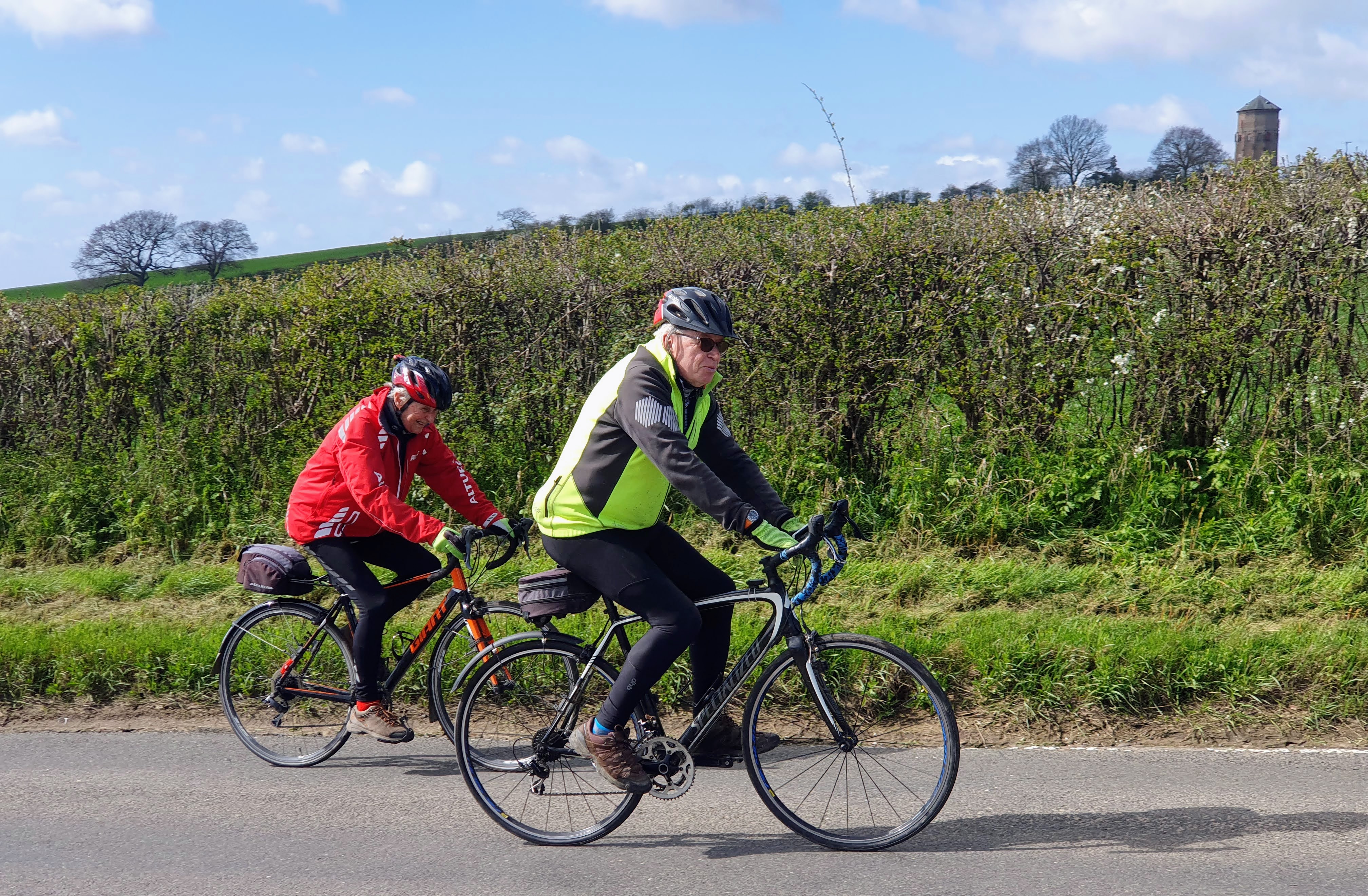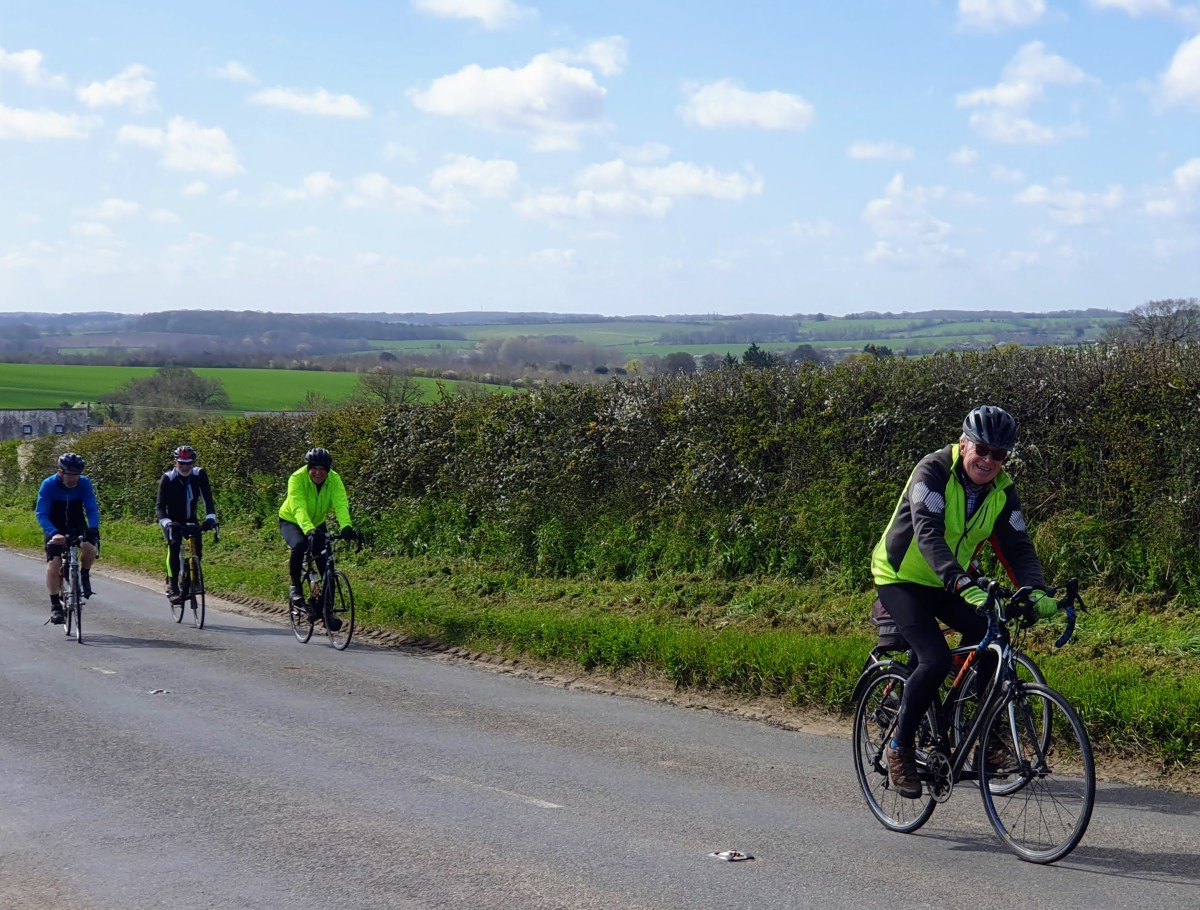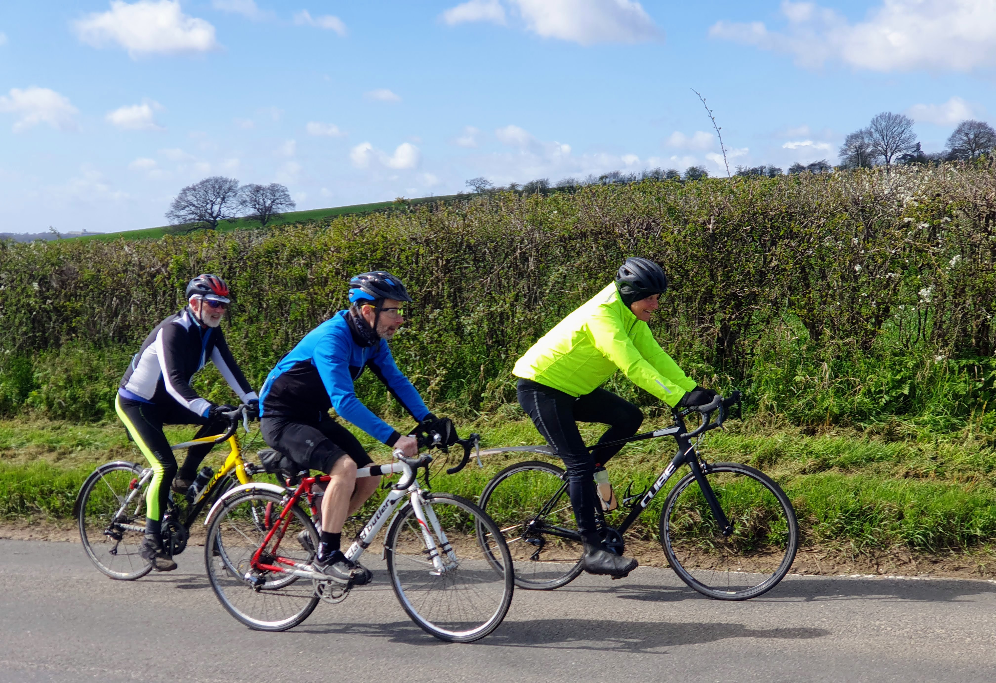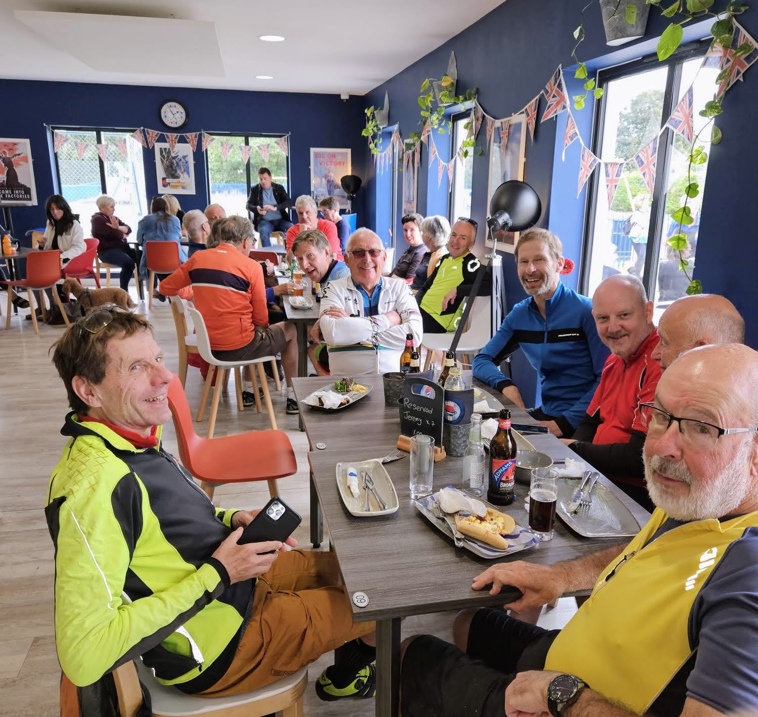 Refreshed, our 12-strong** peloton set off on the return leg via Great Shelford and Whittlesford, back to Duxford where we were delighted to be joined by Maurice, Ken and Victor – the latter having taken an unfortunate tumble from his bike and needing a little attention to his abrasions. Glad to say, nothing was broken.