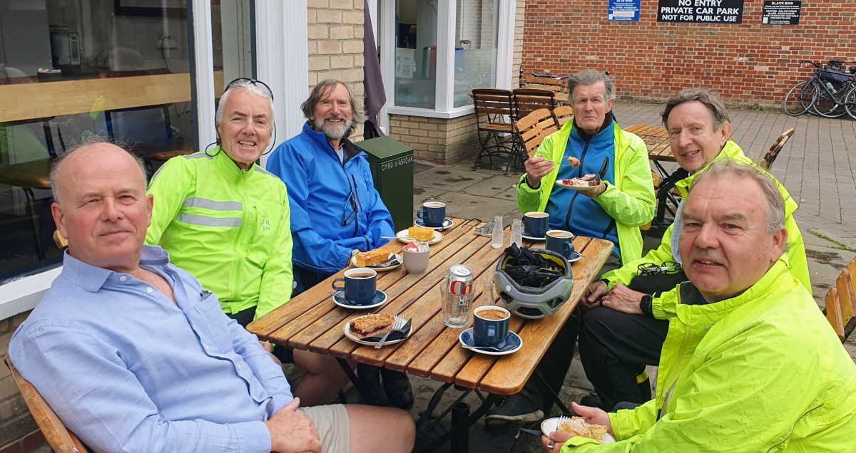 Graham’s plan to meet everyone over coffee in The Chestnut Tree took a knock when he sustained a puncture just outside West Wratting. So instead of warming himself with a hot drink in the pub, he was seen wrestling with tyre levers out in the garden.
