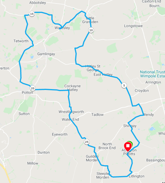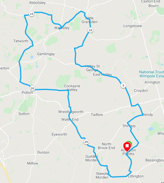 Happy Birthday, Maurice!30 miles clockwise: Abington Pigotts, Guilden Morden, Wrestlingworth, Cockayne Hatley, Potton, Waresley, The Gransdens, Hatley St George, Wendy, Shingay, Abington Pigotts