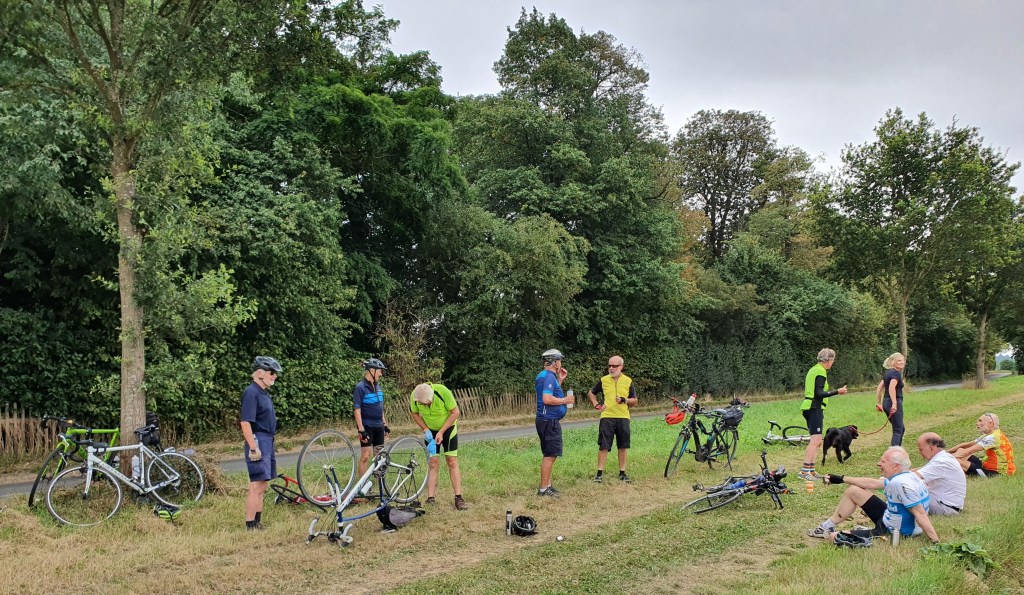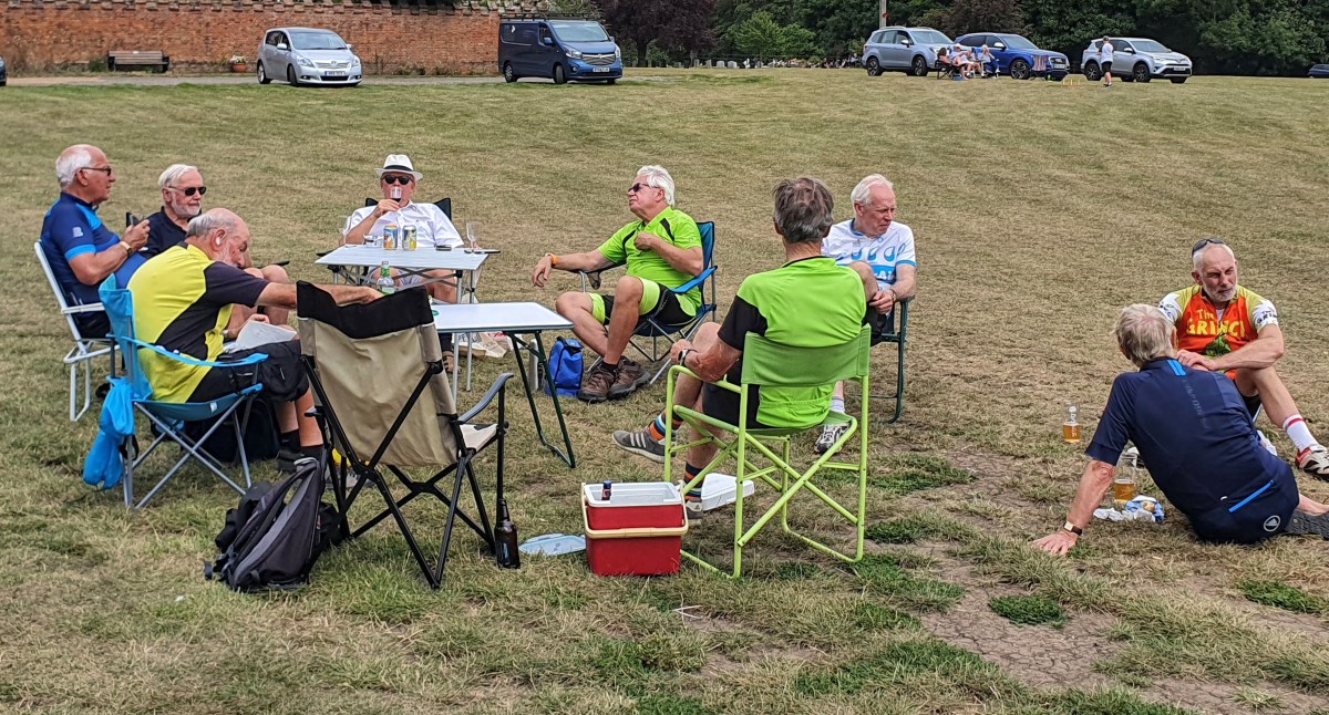 Alas, the pleasant ambience of our picnic spot was disturbed when the Volvo driver reappeared, driving across the green and pulling up alongside us to complain about her car being scratched. Andrew, remaining impressively calm and businesslike, thought it best to de-escalate things by exchanging details. After all, this is what our club insurance with Cycling UK is for and – thankfully – the heat was taken out of the encounter. Well done, Andrew, for handling things in such a business-like manner.