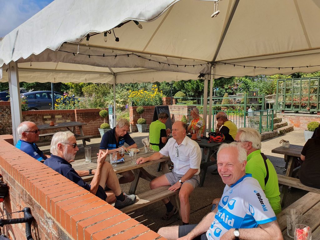 Returning to Sicklesmere via Bridge Street, Shimpling and Hawstead, we enjoyed an alfresco lunch at the The Rushbrooke Arms where, thankfully, Graham managed to down a few restorative pints ahead of his 35 mile return home, neighbour Mike joining him for the ride.