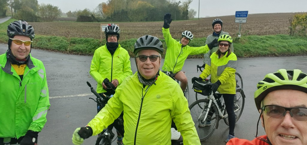 Whether it was the distance getting there, the forecast of wind and rain, or just the prospect of Brian leading the outing, turnout was low with just six Windmillers gathering at The Bell. And with Brian setting us off clockwise on a route he himself had labelled anticlockwise, it wasn’t the most auspicious of starts.