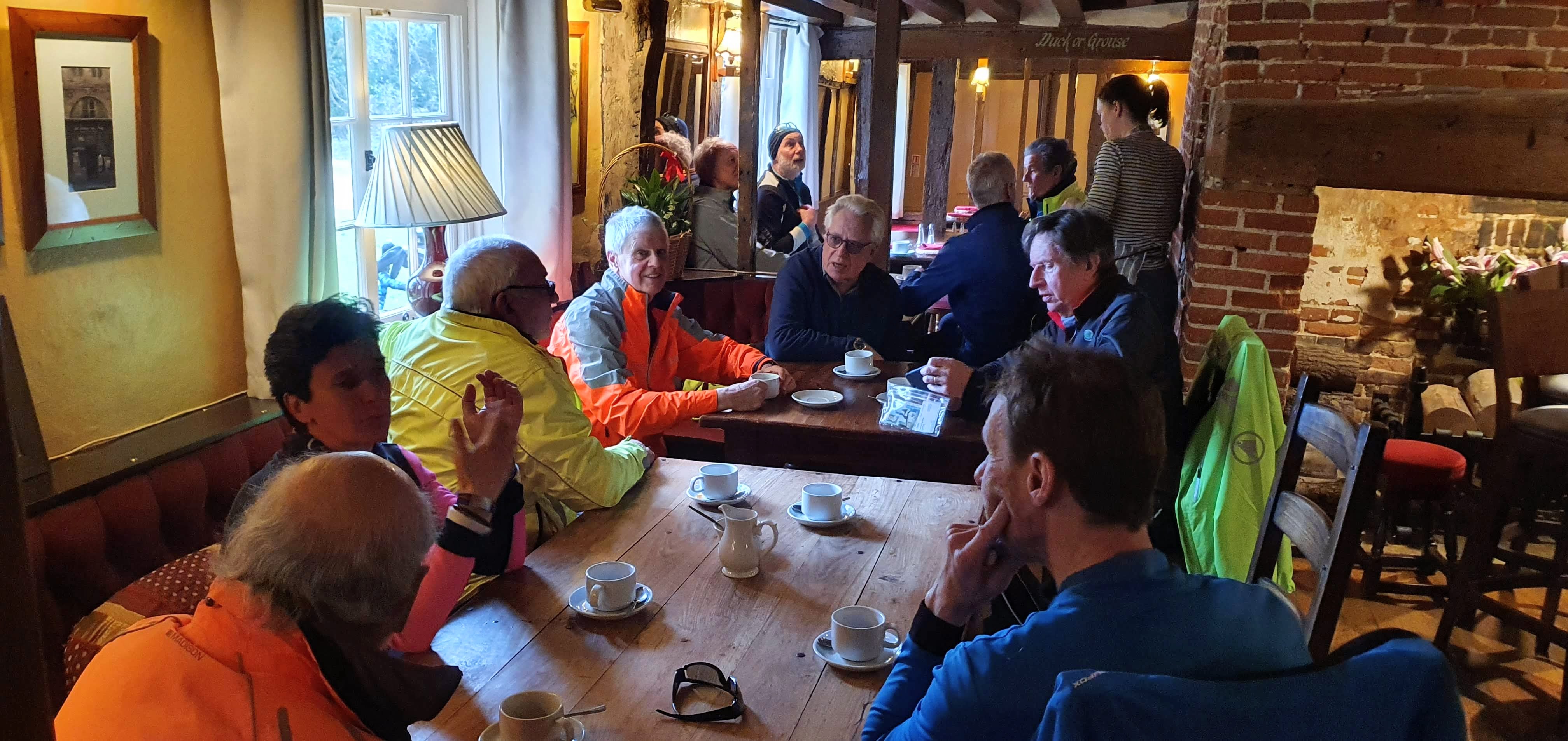 Maurice had planned our refreshment stop at the Guildhall tearoom in Lavenham, but Andrew’s peloton had other ideas. A chance discovery led them to Cafe Como in Brent Eleigh where they reported on the excellence of both coffee and cake. We must all return there some day soon.