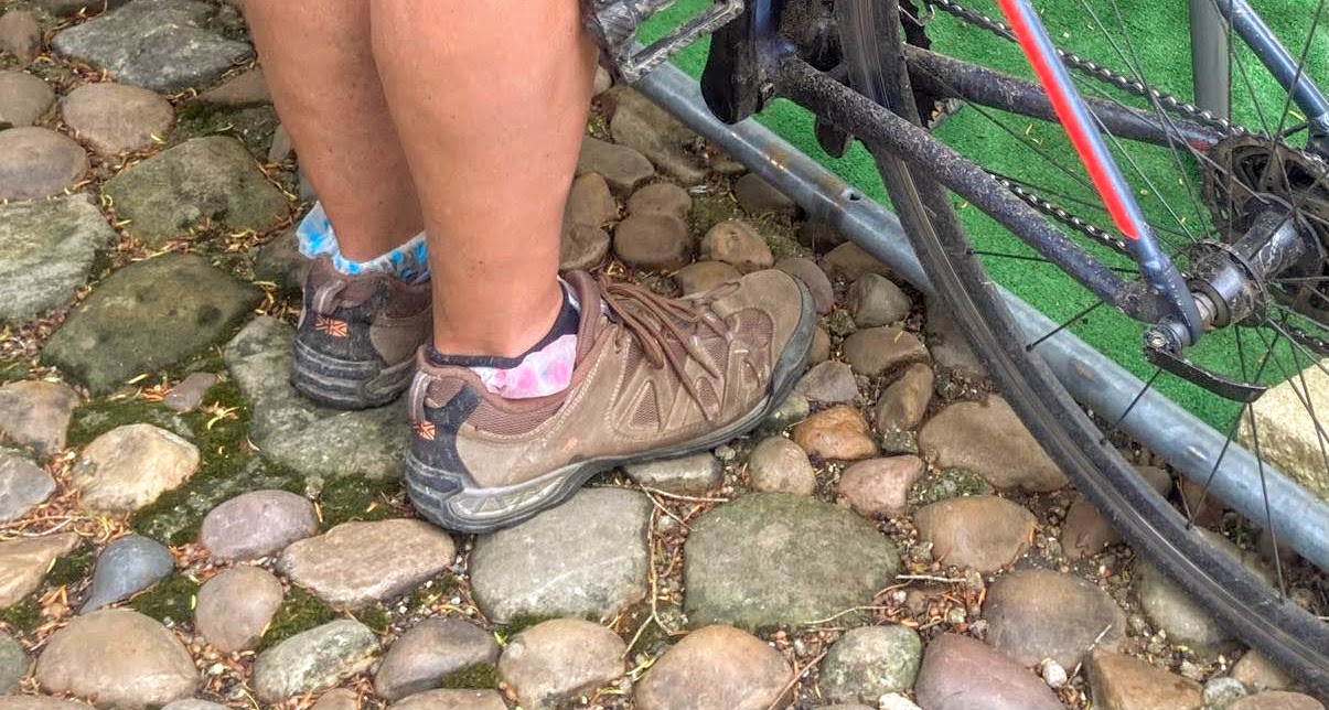 Arriving back at the Swan Inn, birthday boy Keith kindly bought us all a beer as we complimented him on his excellent route. Nobody mentioned his eccentric taste in footwear. Happy Birthday, Keith!