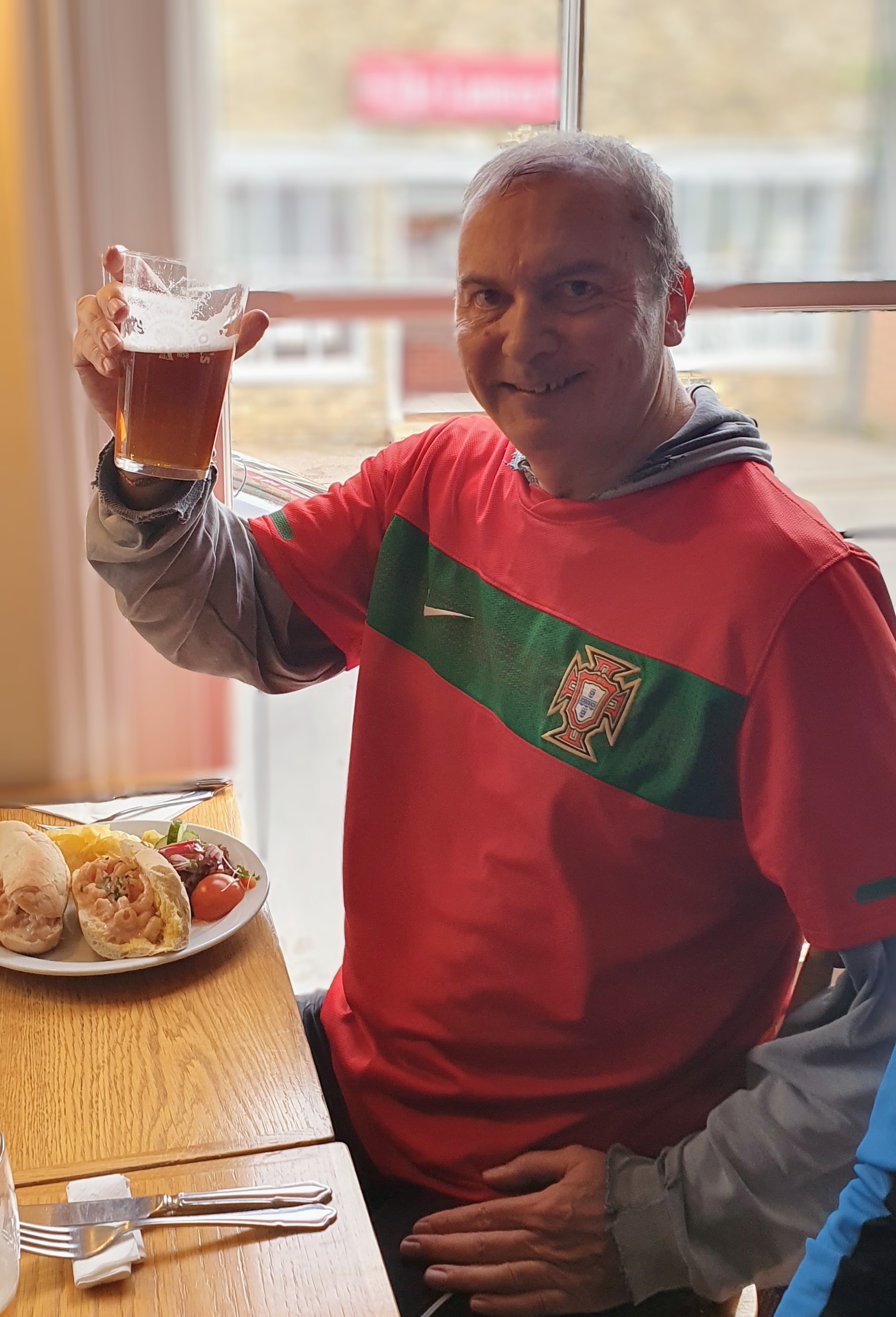Sod the coffee, let’s have a real drink – seemed to be the general feeling as we formed a socially distanced queue at the bar – and Rod, now looking distinctly red in the face, expressed strong approval. What’s more, having missed celebrating his birthday during lockdown, Charles insisted on buying the beers. Thank you, Charles, and a belated very happy birthday to you.
