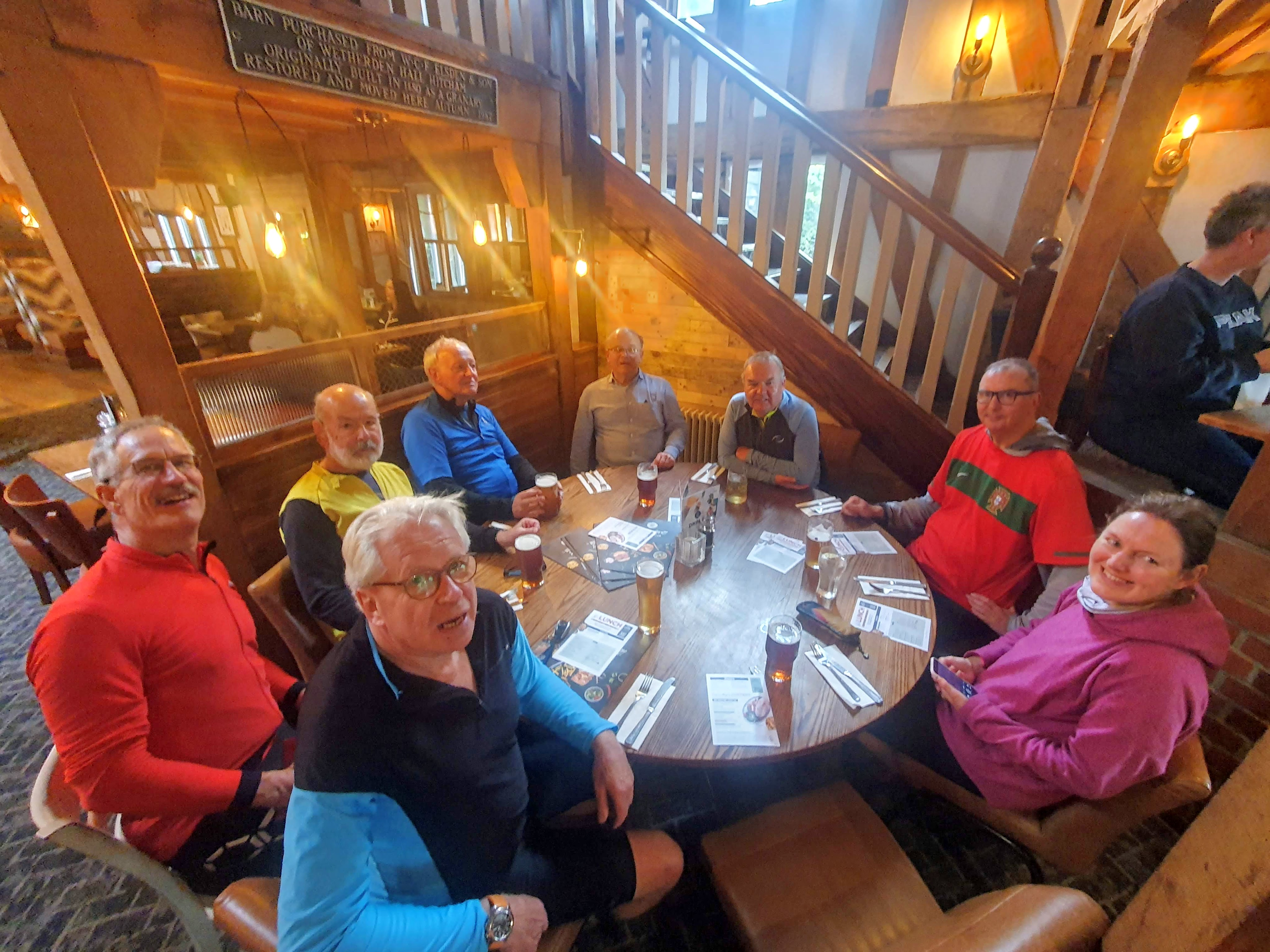 At 37 miles, this outing was a little longer than usual – and a hilly one too – so it was with relief that we arrived back in Rede, tumbling into The Plough for a very welcome beer and a slap up lunch.