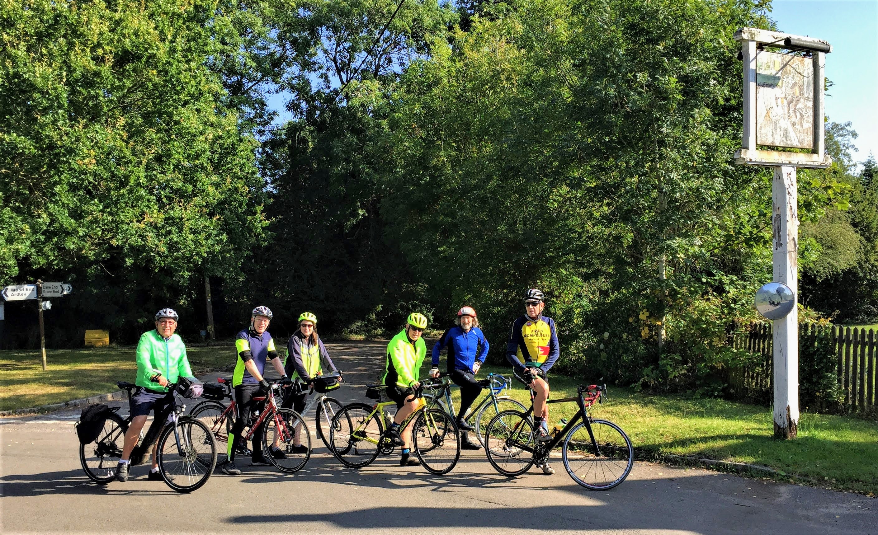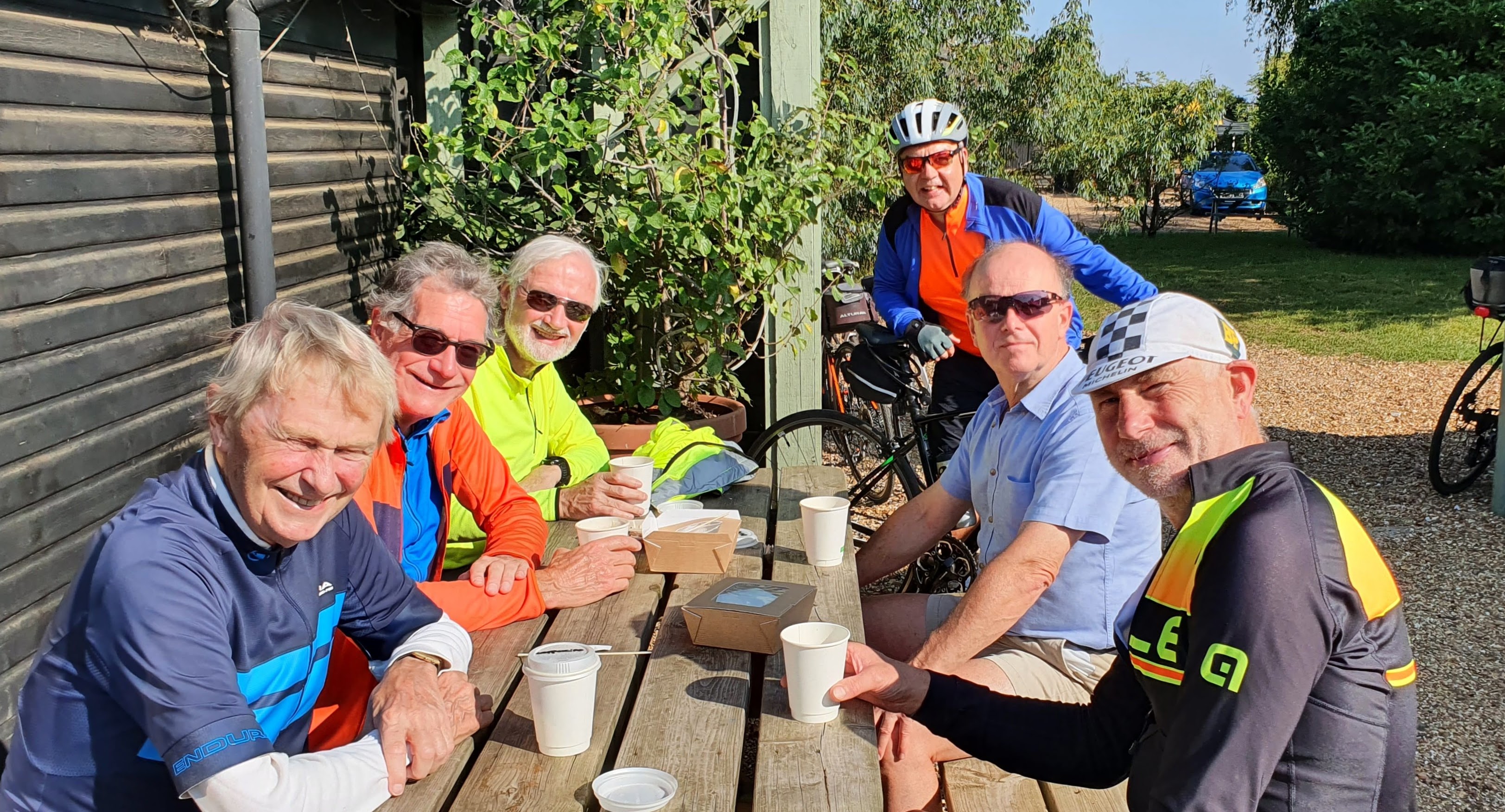Rod’s route took us south from Therfield, with an early coffee stop just nine miles in at Ardeley – or at least that was the plan. Half of us did indeed stop there – but were bemused to see the other half sail by, seemingly oblivious to the prominent sign, ‘Farm Café & Coffee Shop’. You can only lead a horse to water,eh?