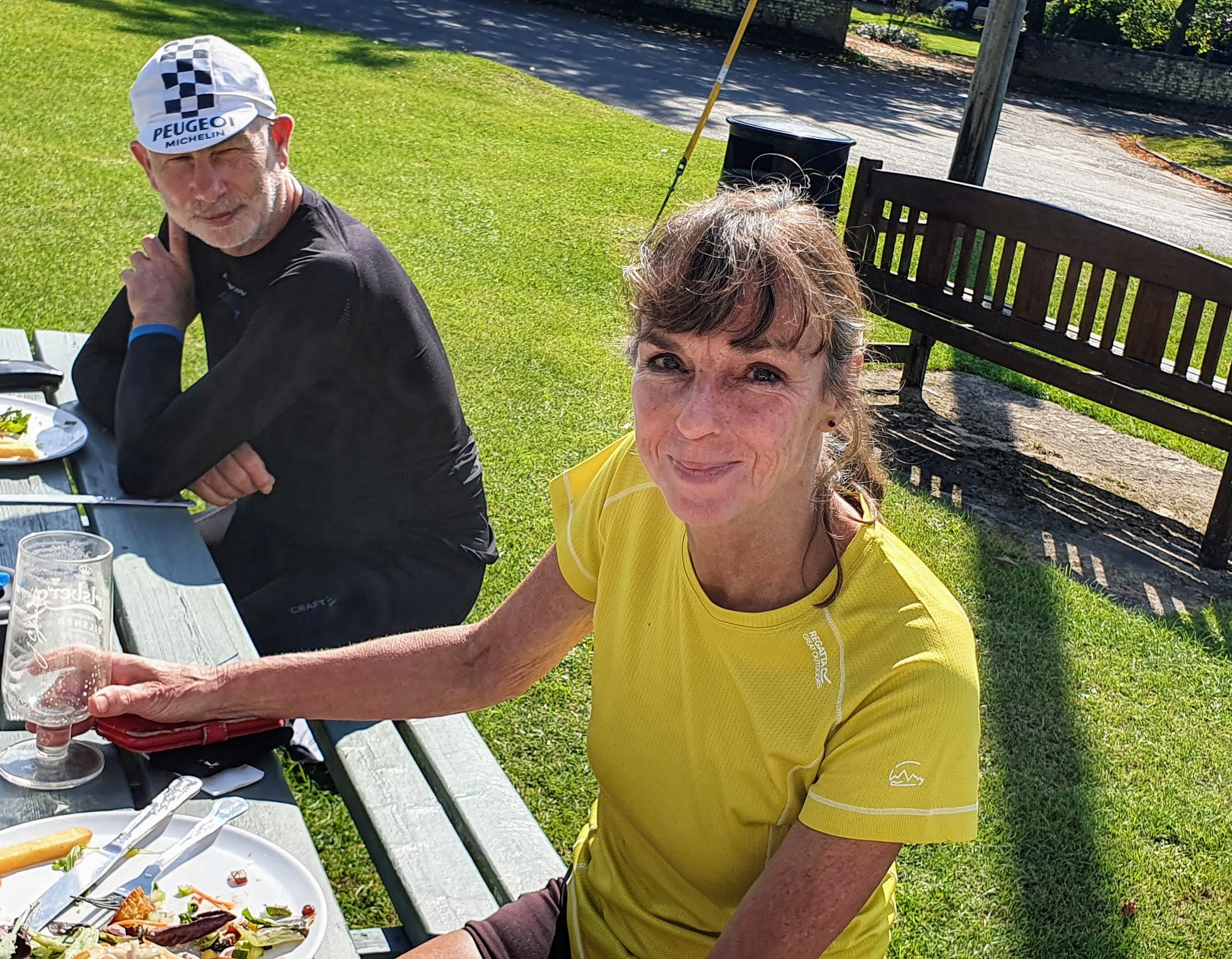 That said, we all enjoyed a splendid morning’s ride, working up an appetite for an equally splendid lunch. Arriving at the pub, we were delighted to be joined by Suzanne, all the more so as – this being her birthday – she was very generously buying the beers.