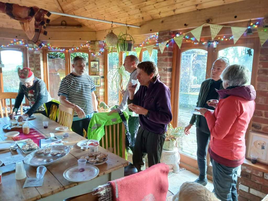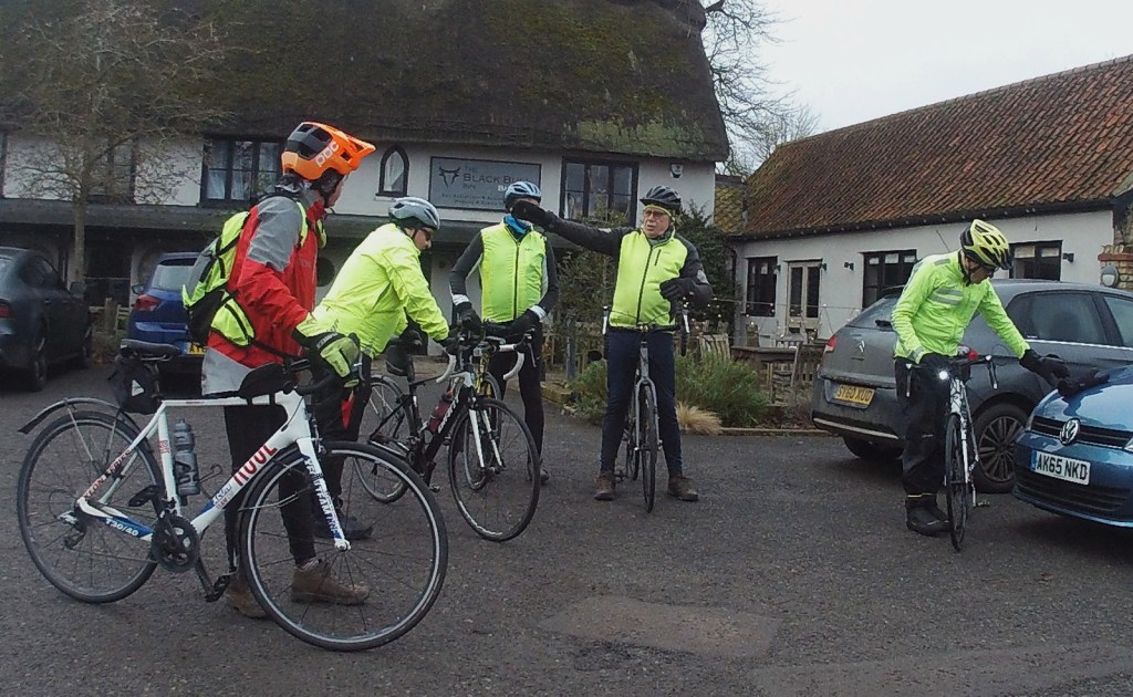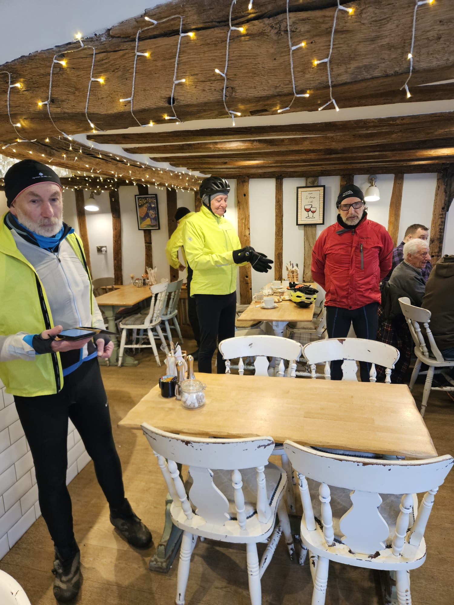 By the time coffee was over we had warmed up a bit and so the odd layer was shed before the return leg back to Balsham, into quite a strong head wind.