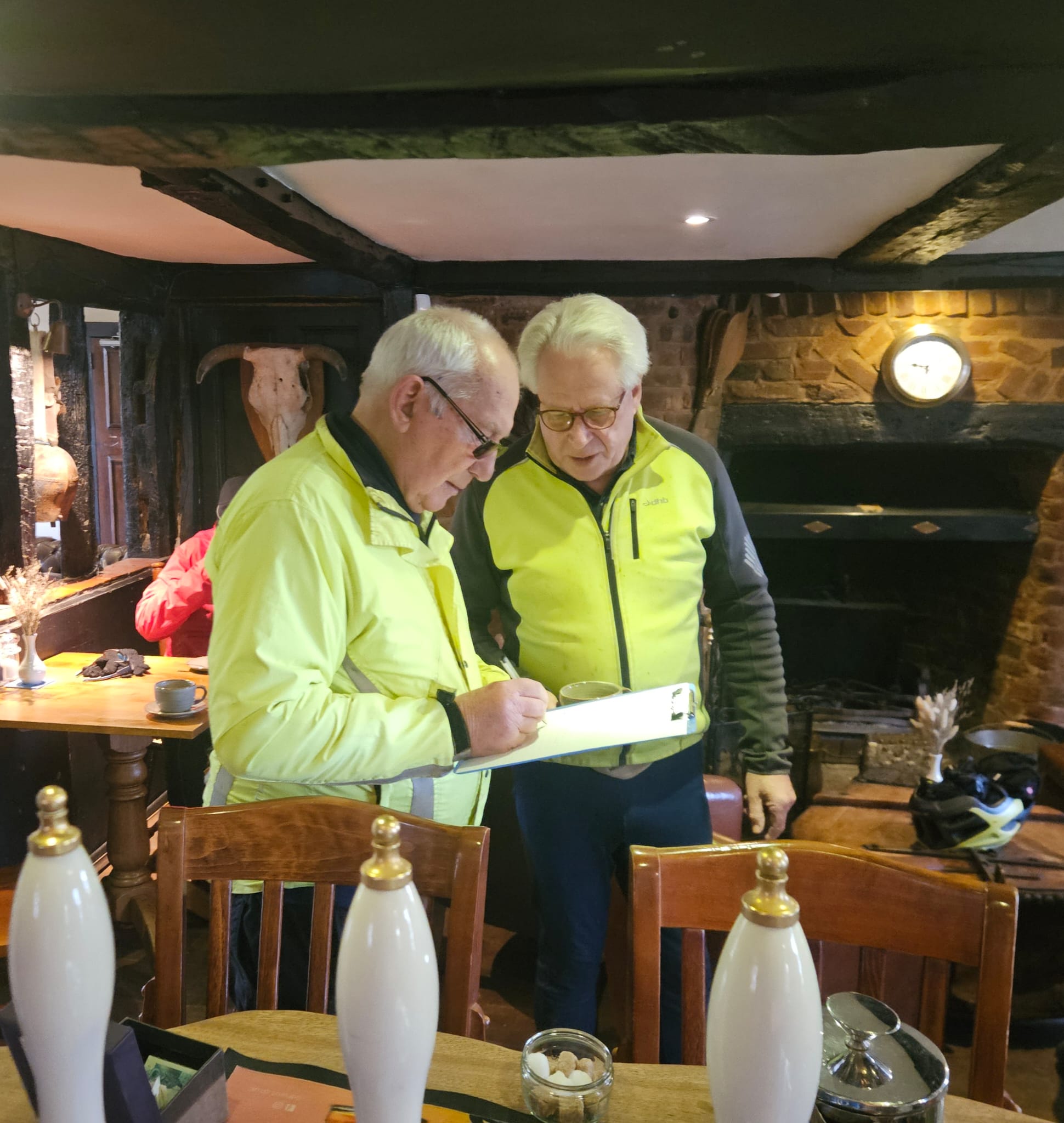 The wandering Windmillers meant fewer than usual for Maurice’s ride from The Black Bull in Balsham, but it was good news for Alan who was buying the birthday beers. Besides those two, the others who warmed up before the ride were Brian, Rod, Victor, Ric, Charles, Jeremy, Neil and both Martins. Ken joined us for lunch.