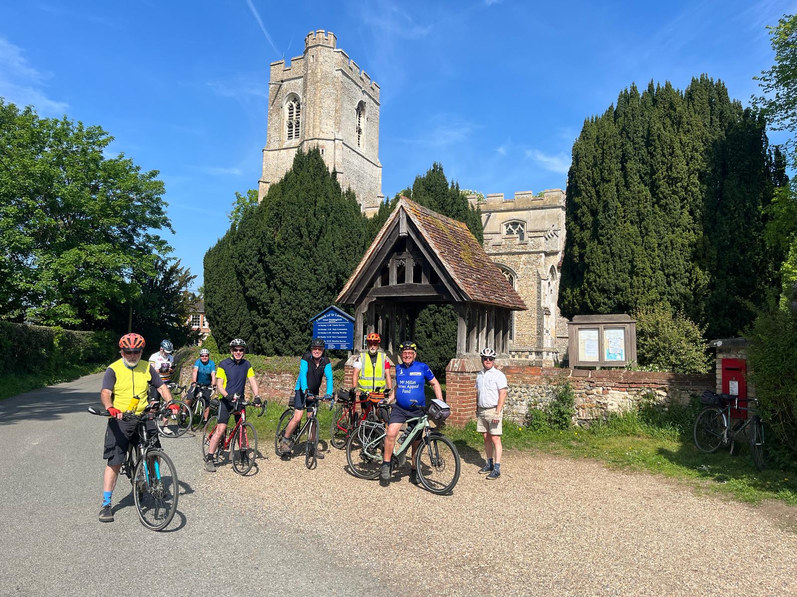 Maurice shot off at high speed with four in his wake on a circuit via Bartlow, the Bumpsteads, Baythorne End, Kedington, Great Wratting, Withersfield and West Wickham. The second group of six caught up the first in Bartlow where it was tempting to divert down a footpath to see the Three Hills (Roman burial mounds) but it was decided to do this another day. There used to be five burial mounds but in their wisdom the company that built the railway line from Four Went Ways to Haverhill decided to destroy two as they were in the way. HS2 has had a somewhat tougher process to endure, thankfully.
