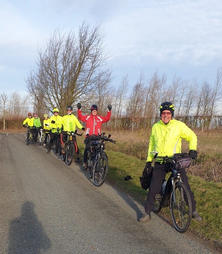 It was a glorious spring morning with daffodils and blossom much in evidence as thirteen Windmillers set out from Therfield for a 30 mile tour of NE Herts. The gang comprised Alan, Andrew, Brian, Deborah, Graham, Howard, Ken, Maurice, Nigel, Ric, Roger, Sandra and Tom. Apologies / cast iron excuses had been tendered by Simon (covid), Martin (skiing) and Rod (Australia).