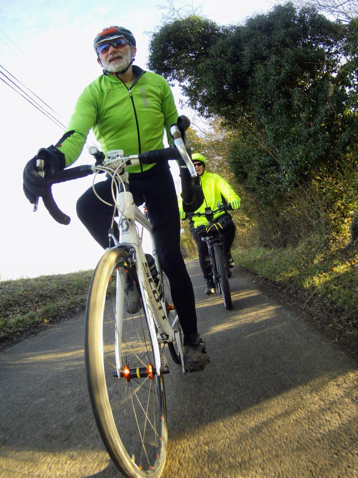 At 24 miles, our route was somewhat shorter than usual but, given the late start, low temperatures and hilly terrain, not to mention the promise of free beer courtesy of birthday boy Brian, we were looking forward to returning to the – hopefully warm – embrace of the Fox & Duck. Alas, the heating had failed and the place was decidedly chilly, so chilly indeed that we asked to move tables; not that that made much difference.