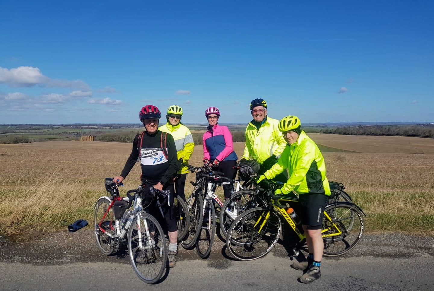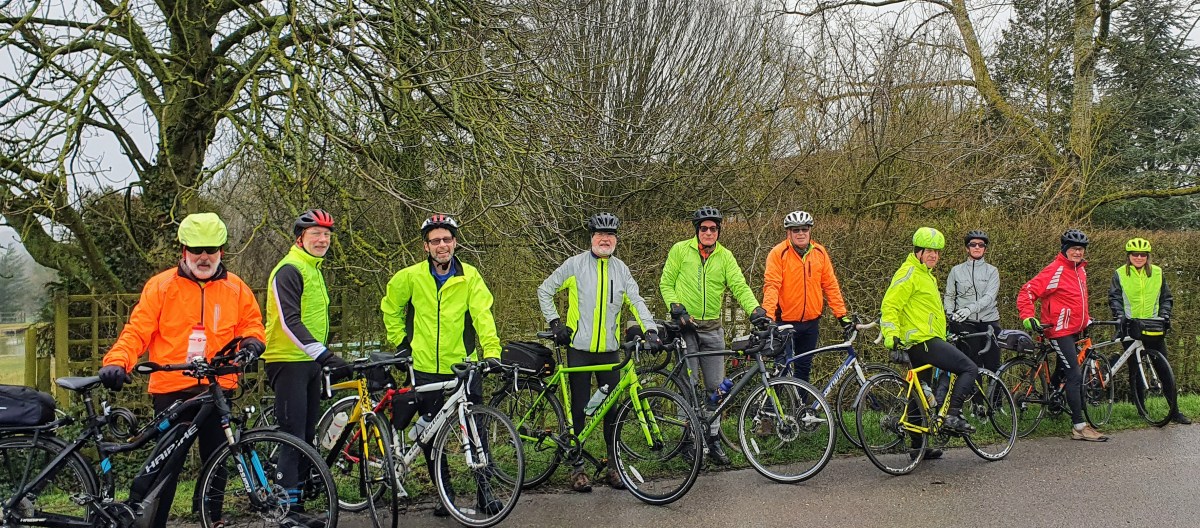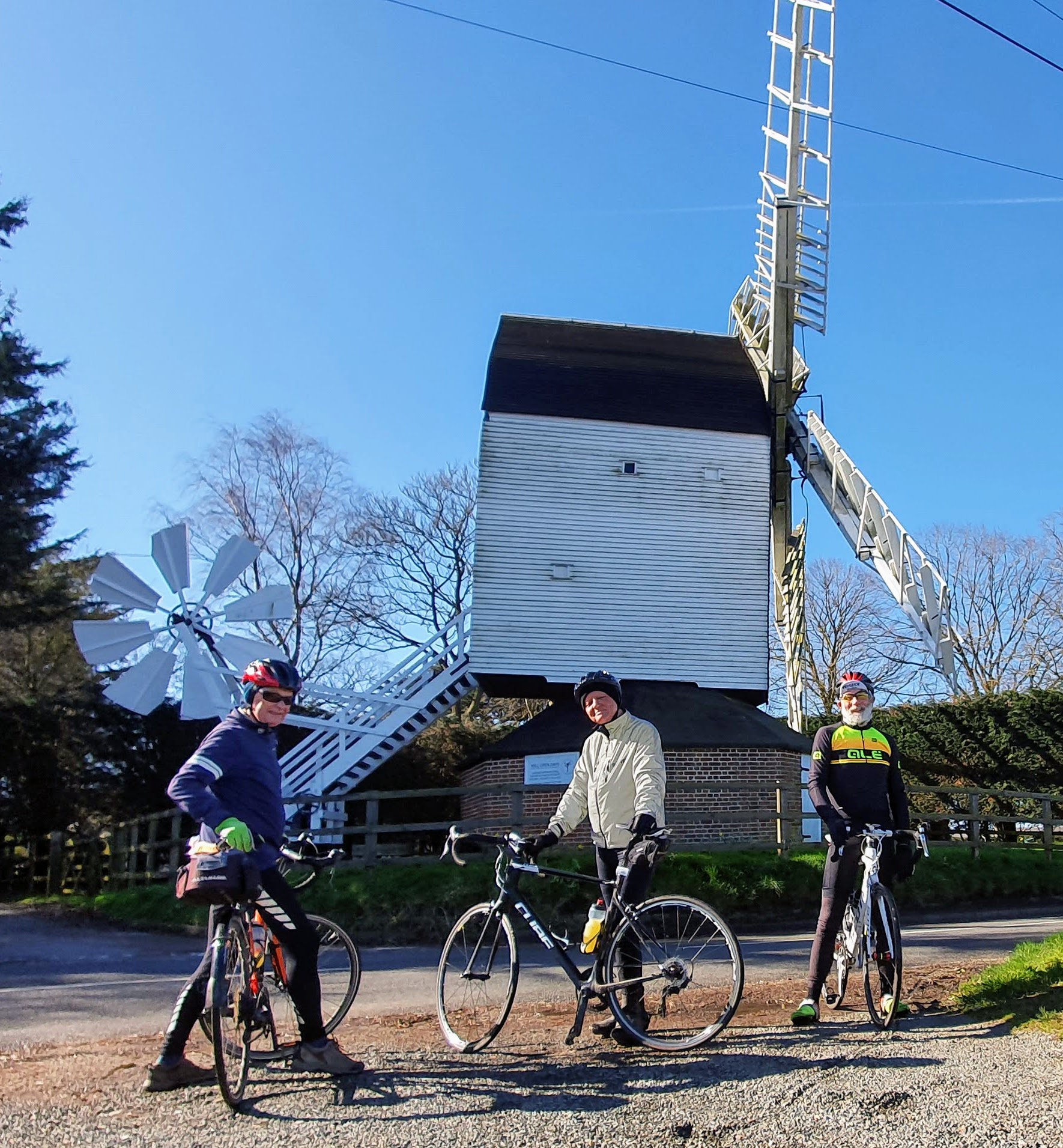 It was a glorious spring morning with daffodils and blossom much in evidence as thirteen Windmillers set out from Therfield for a 30 mile tour of NE Herts. The gang comprised Alan, Andrew, Brian, Deborah, Graham, Howard, Ken, Maurice, Nigel, Ric, Roger, Sandra and Tom. Apologies / cast iron excuses had been tendered by Simon (covid), Martin (skiing) and Rod (Australia).