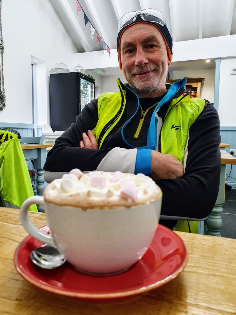 Sixteen miles in, we pulled up for refreshments at Poppy’s Barn, our first visit to this little gem of a tea room in the middle of nowhere; the tiny hamlet of Butt’s Green being the nearest habitation. The coffee and cake were exceedingly good and Graham spoke highly of the hot chocolate with marshmallow topping.