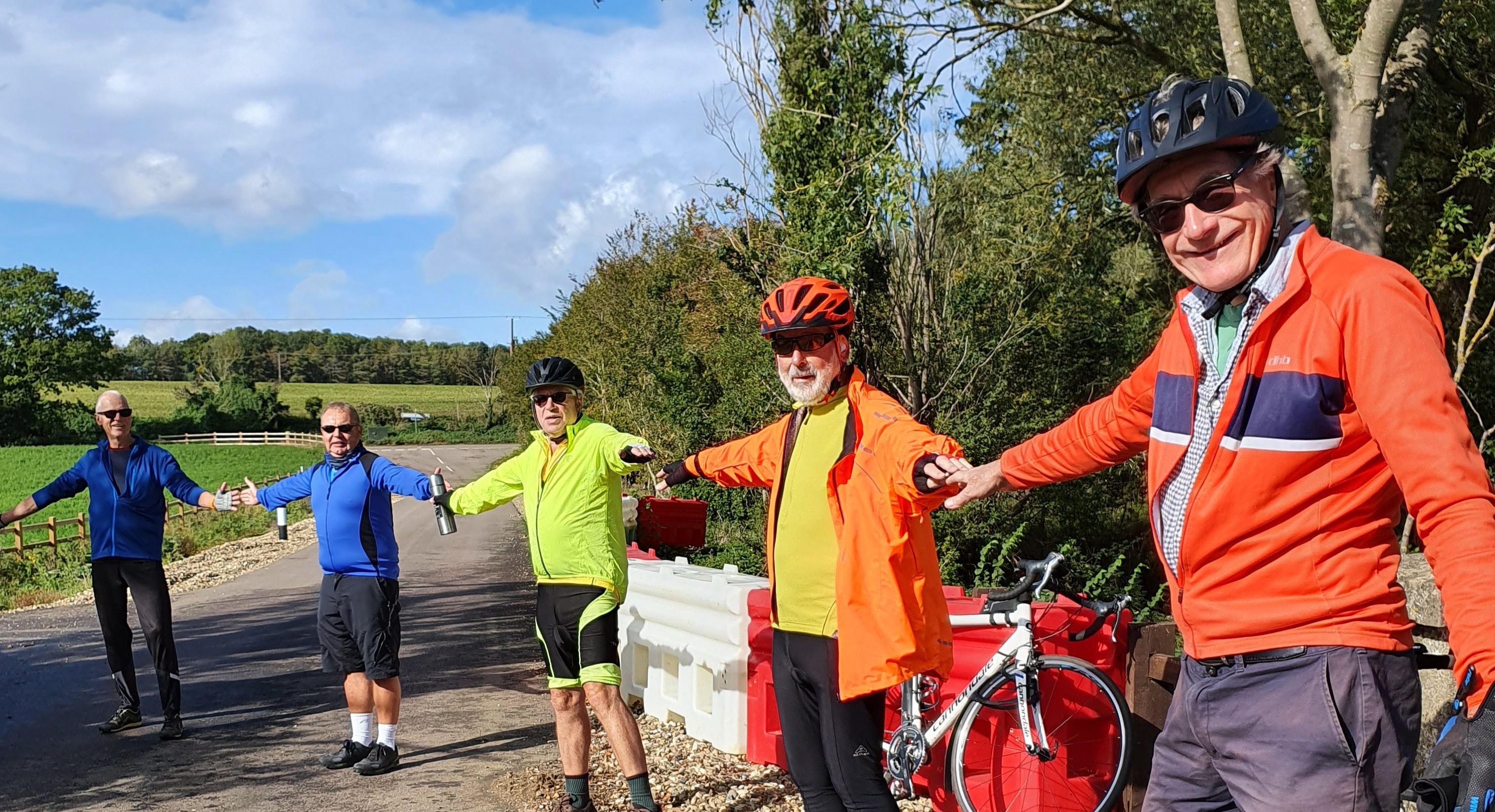 The morning had started fair, twelve Windmillers exiting the Golden Fleece car park heading for Clavering. But poor old Maurice suffered an early setback when the e-part of his e-bike gave up the ghost and he was forced to return to the pub leaving us at the mercy of Andrew – who assured us he knew the route. We looked at our feet, “Mmmm, we’ll see.”