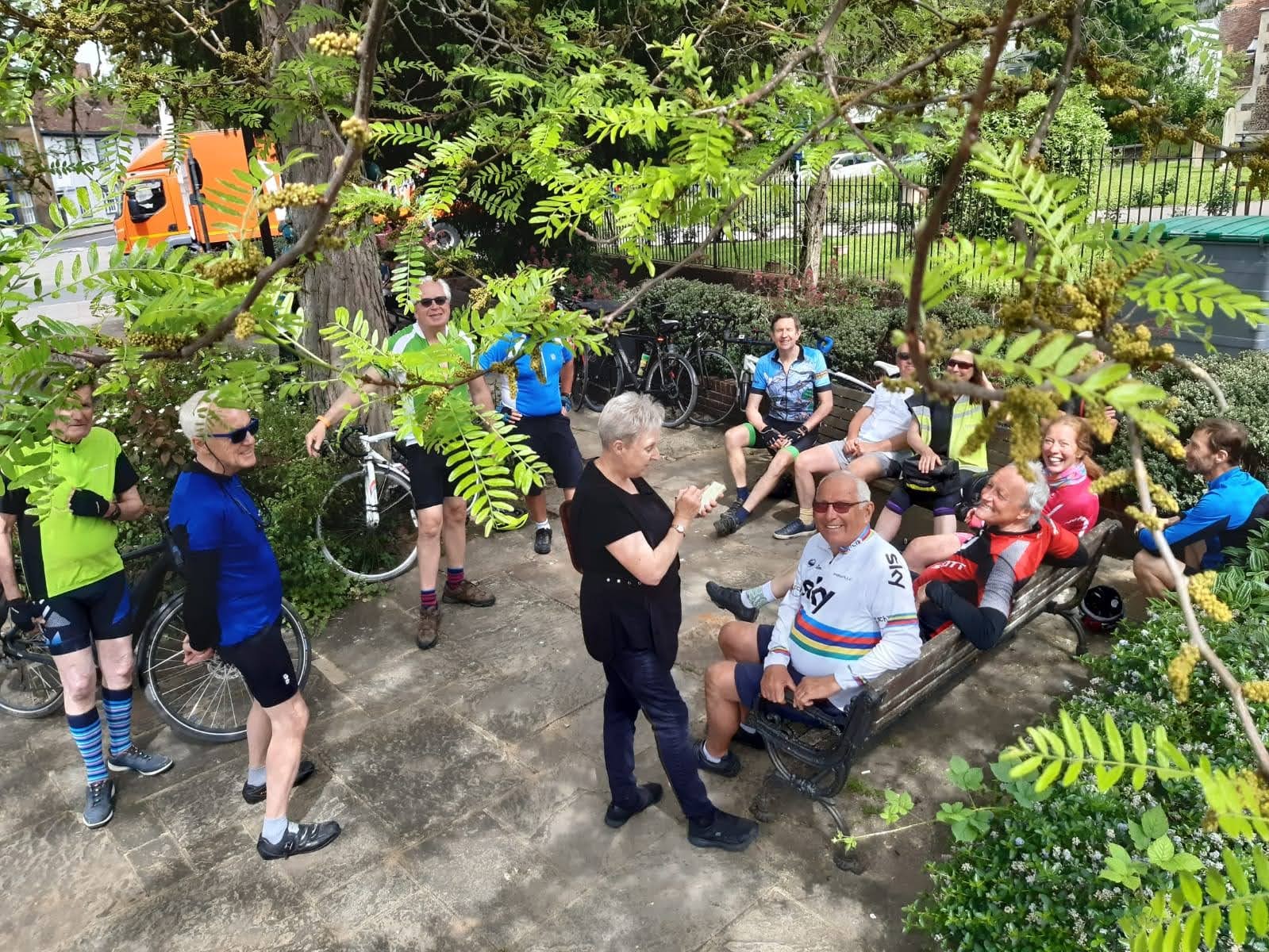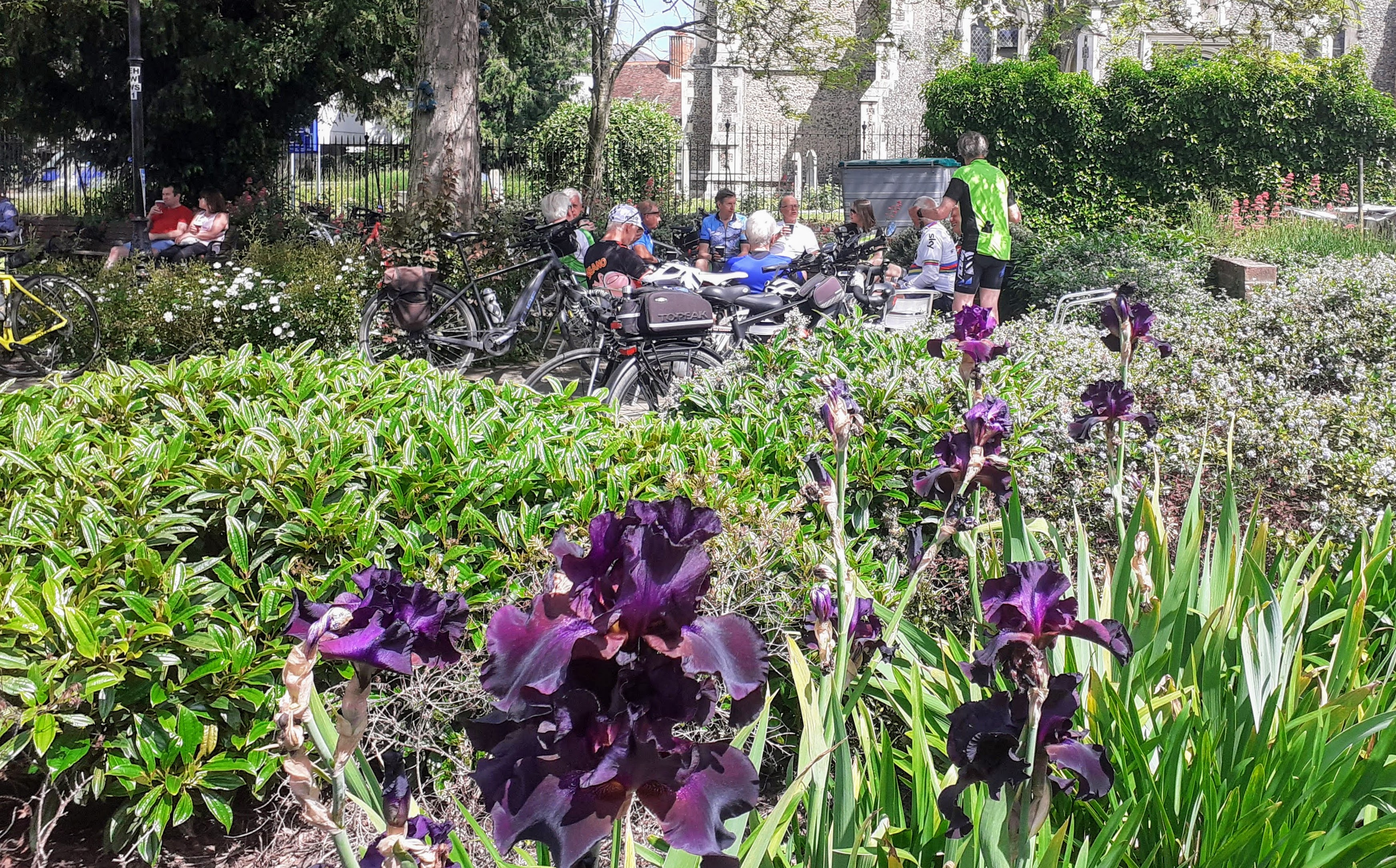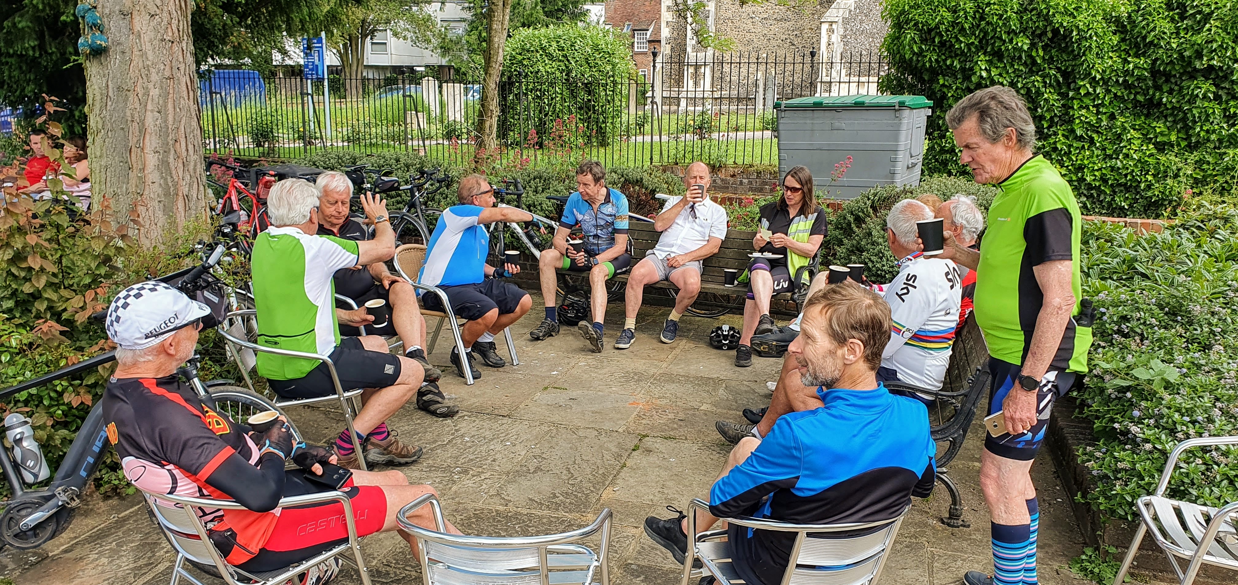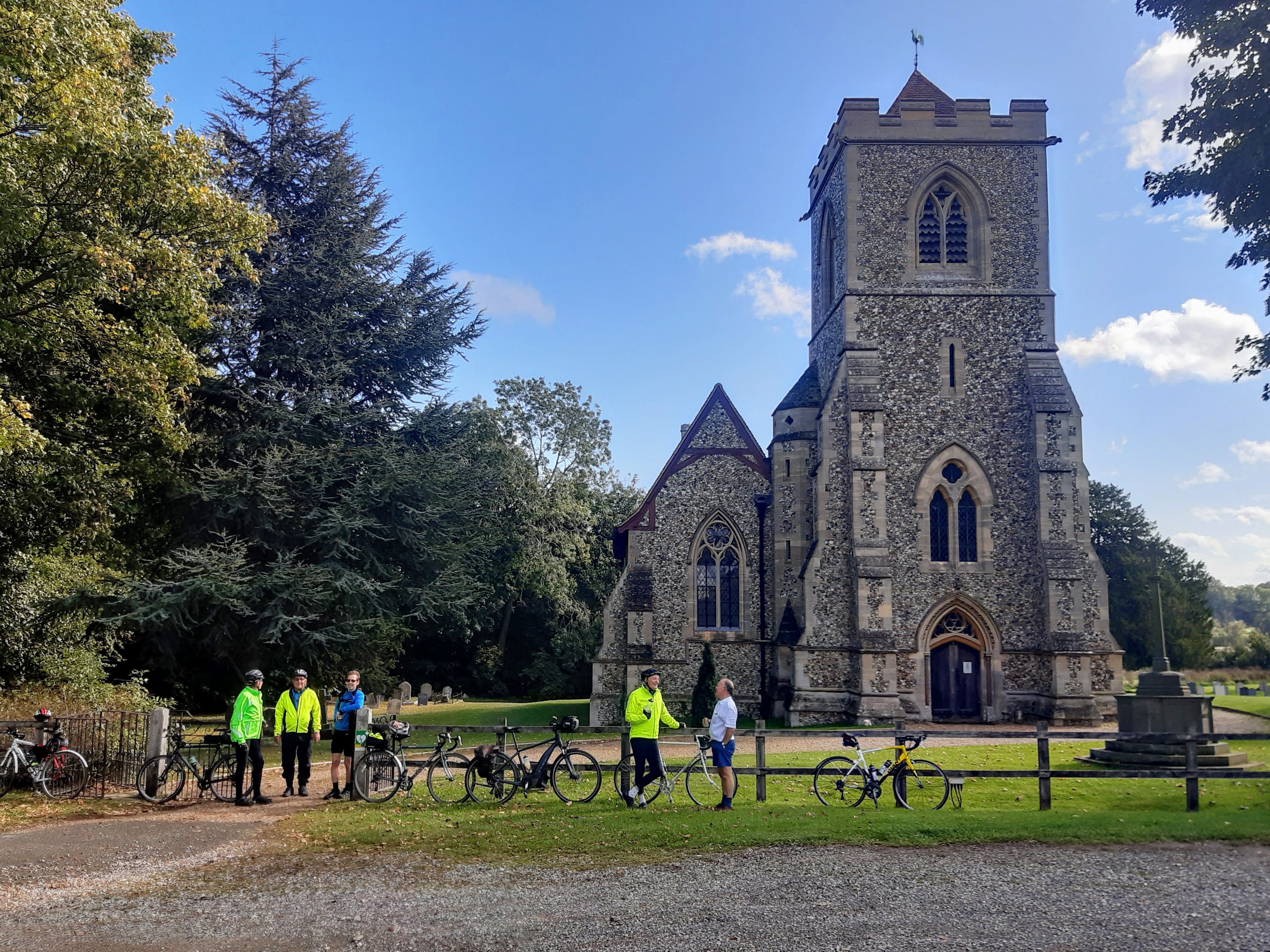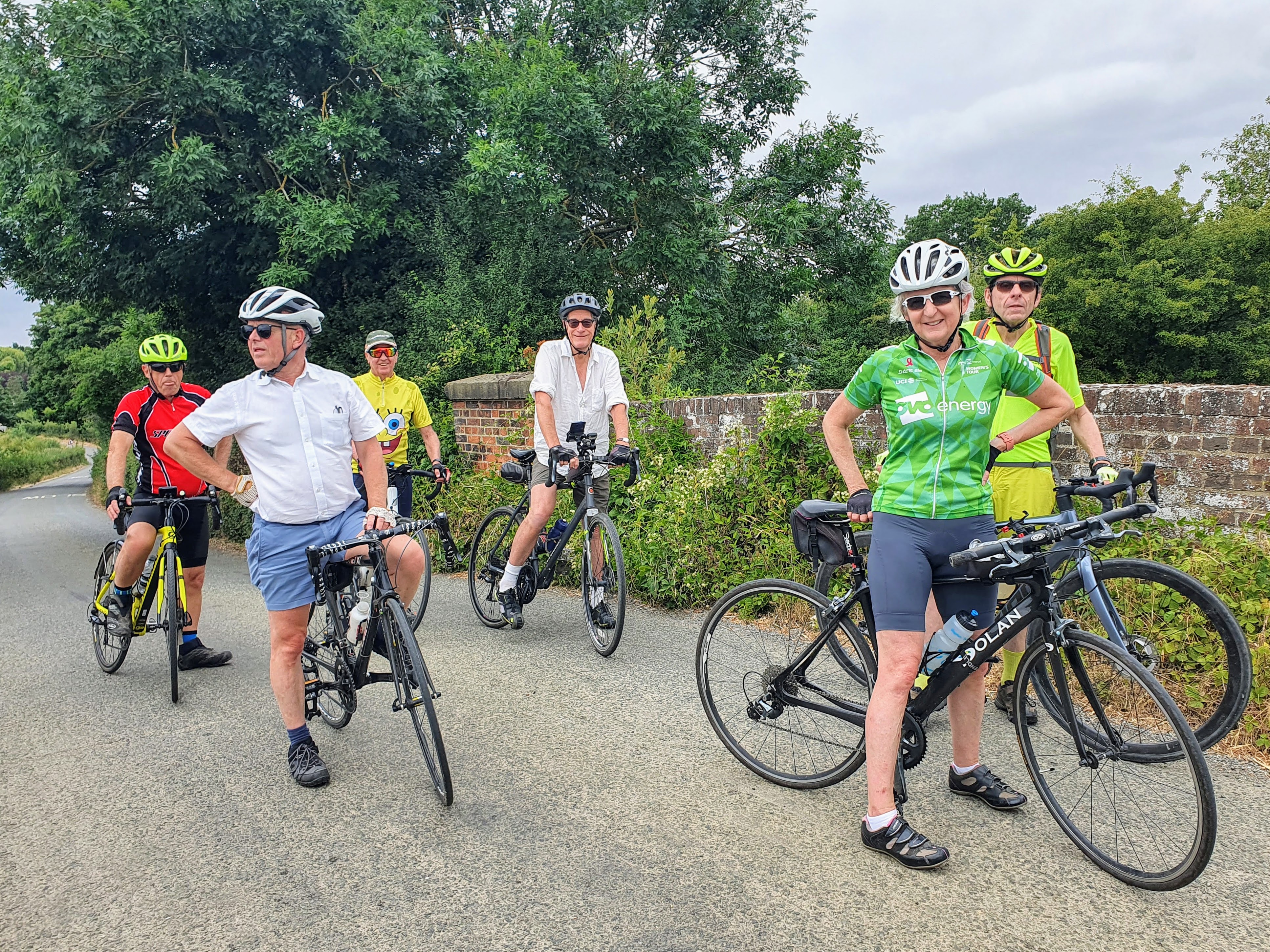Maurice had promised us a flat ride but, e-bike convert that he is, maybe he no longer notices the hills. We certainly did and, as the morning wore on and the mercury headed upwards of 25C, our once-tight peloton became strung out over a mile or more. While some of us like it hot, others, most notably Simon, aren’t so keen and, by the time we pulled in for refreshment at Braughing, he was looking distinctly pink.