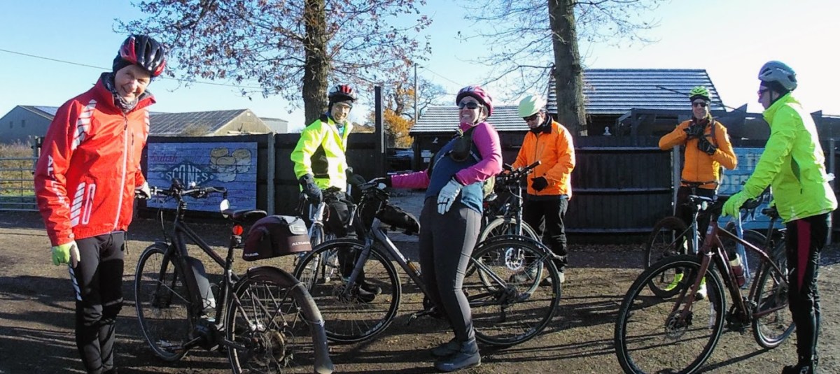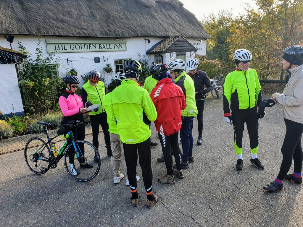 Lovely ride today on another of Maurice’s scenic, traffic-free routes along the border between north Herts and north Essex. Setting off from The Catherine Wheel, Albury, we headed for Hazel End where we turned north for Manuden, Rickling and Arkesden, clocking up some sixteen miles before pulling in for refreshments at Compass Courtyard.