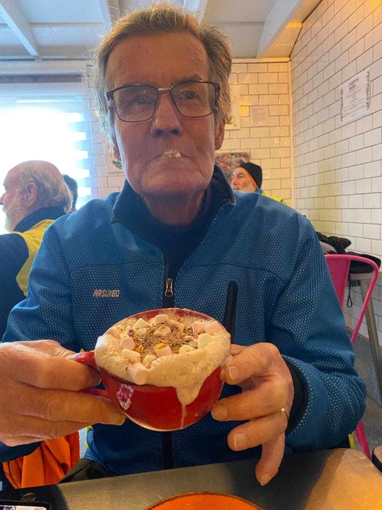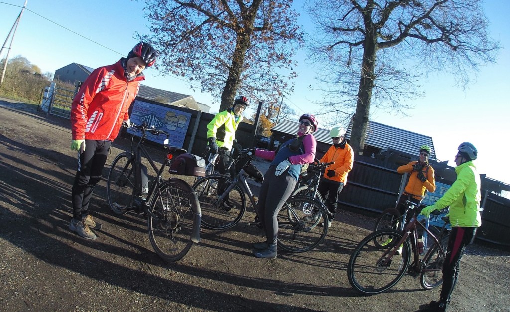 Around the half way mark we pulled in at Poppy’s Barn and met up with Hazel, Graham and Ken for coffee and mince pies all round, except for Jeremy who had to feed his porridge addiction.
