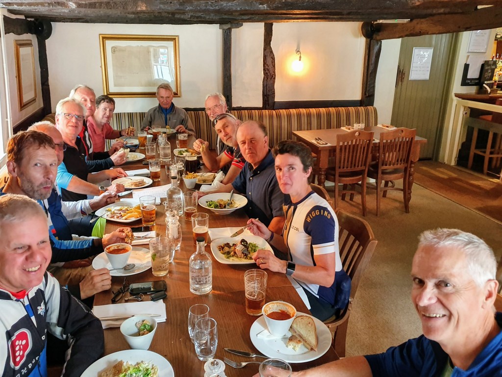 Cresting Hartest Hill, we freewheeled back down to The Crown where Roger, top chap, bought us all beer. Happy Birthday, Roger.